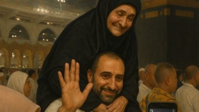بعد لحظات دخل ولدها الأكبر تعبان من السفر ثوبه بسيط و وجهه فيه هم الدنيا. جلس عند قدميها وقال بهدوء
